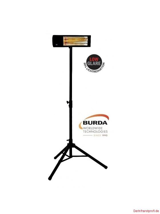 Mobiler Burda Heizstrahler SMART 2000 Low Glare IP24 2 kW mit Stativ.