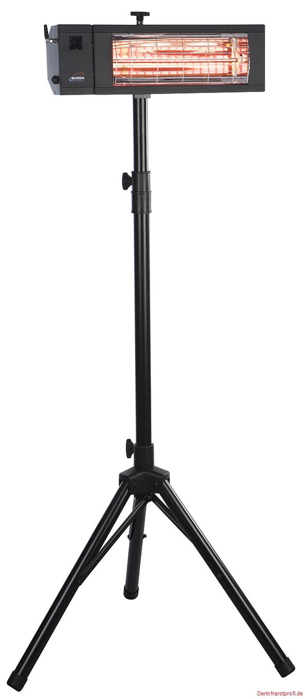 Burda Bluetooth-Heizstrahler Smart IP24 BTBHS2024-1 in Schwarz mit Stativ für den mobilen Einsatz.