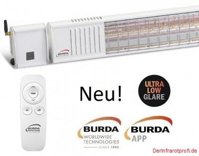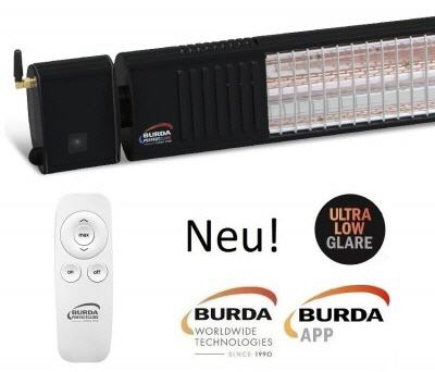 Burda Term 2000 Bluetooth Color IP67 Infrarotstrahler BTURCAC200V9010 mit Ultra Low Glare Heizröhre inkl. Fernbedienung, integriertem Schalter und Bluetooth Steuerung per BURDA PERFECTCLIME APP ist Ihr idealer Burda Heizstrahler für Sofortwärme auf Knopdruck!