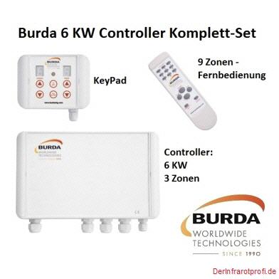 Der Burda Controller BHC 6003 ER - besteht aus dem Keypad zur stationären Steuerung von bis zu 9 Wärme bzw. Licht Zonen. Inklusive Fernbedieung ist sie ideale Ergänzung für Ihre Heizstrahler - auch für Burda L&H (licht & Wärme) Versionen.