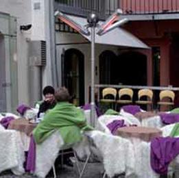 3. Ein weiterer Nachteil ist, dass das brennende Gas eines Gas-Terrassenwärmers empfindlich auf Luftzug reagiert. Ein elektrischer Heizstrahler kann dahingegen auch in Bereichen installiert werden, die Wind und Wetter ausgesetzt sind.
